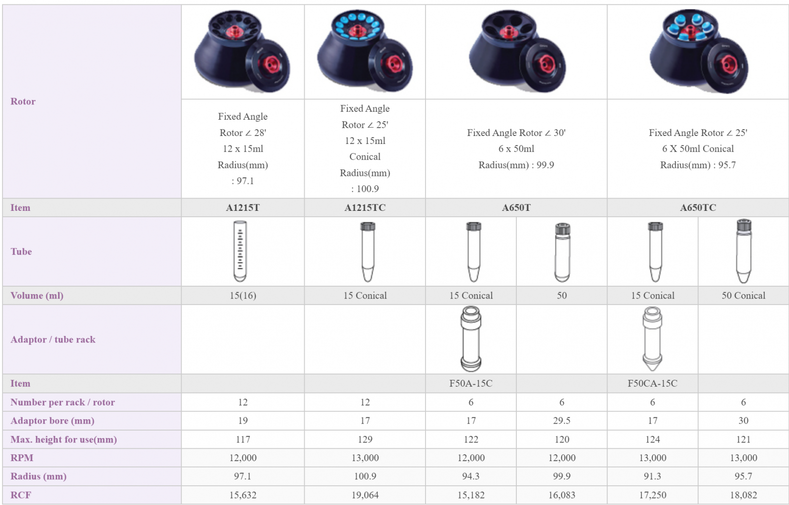 - Tốc độ tối đa: 15,000RPM (Rotor góc); 5,000RPM (Rotor văng)